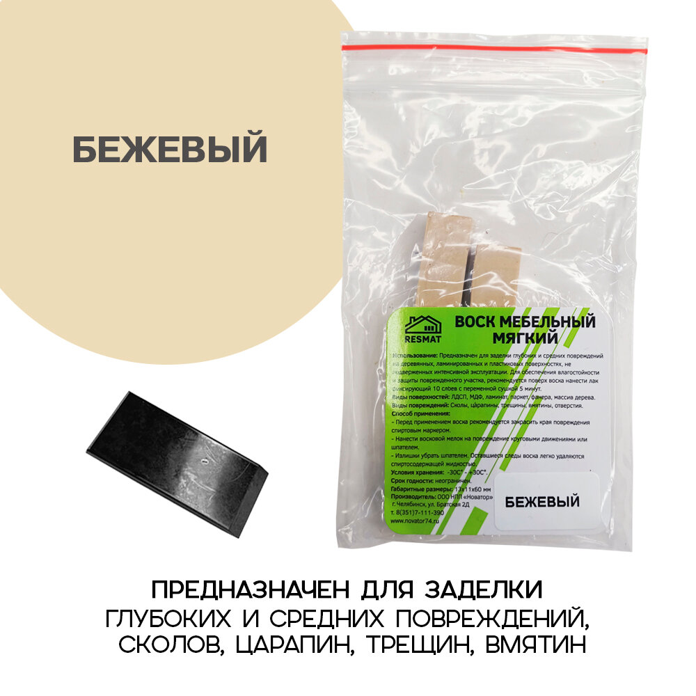 Воск мебельный Resmat для реставрации мебели и ламината 2 шт. со шпателем, бежевый информация: