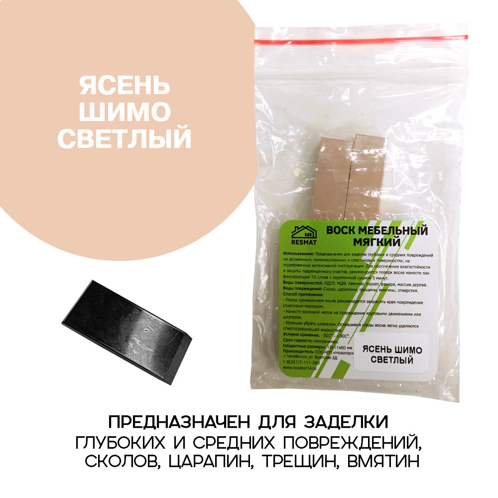 Воск мебельный Resmat для реставрации мебели и ламината 2 шт. со шпателем, "Ясень Шимо Светлый" информация: