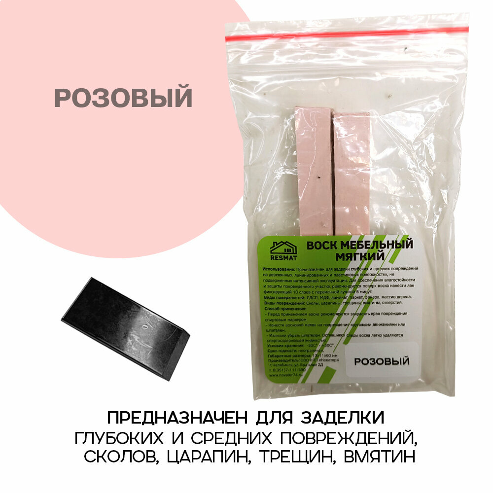 Воск мебельный Resmat для реставрации мебели и ламината 2 шт. со шпателем, розовый информация: