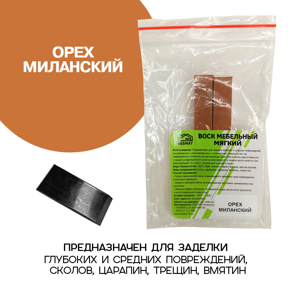 Воск мебельный Resmat для реставрации мебели и ламината 2 шт. со шпателем, "Орех Миланский" информация: