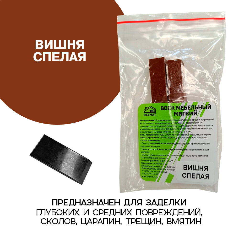 Воск мебельный Resmat для реставрации мебели и ламината 2 шт. со шпателем, "Вишня Спелая" информация: