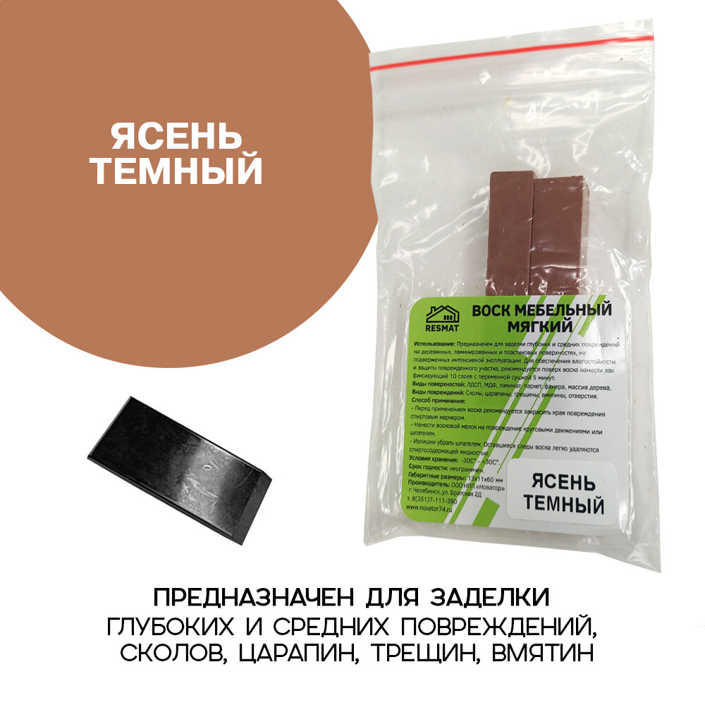 Воск мебельный Resmat для реставрации мебели и ламината 2 шт. со шпателем, "Ясень Темный" информация: