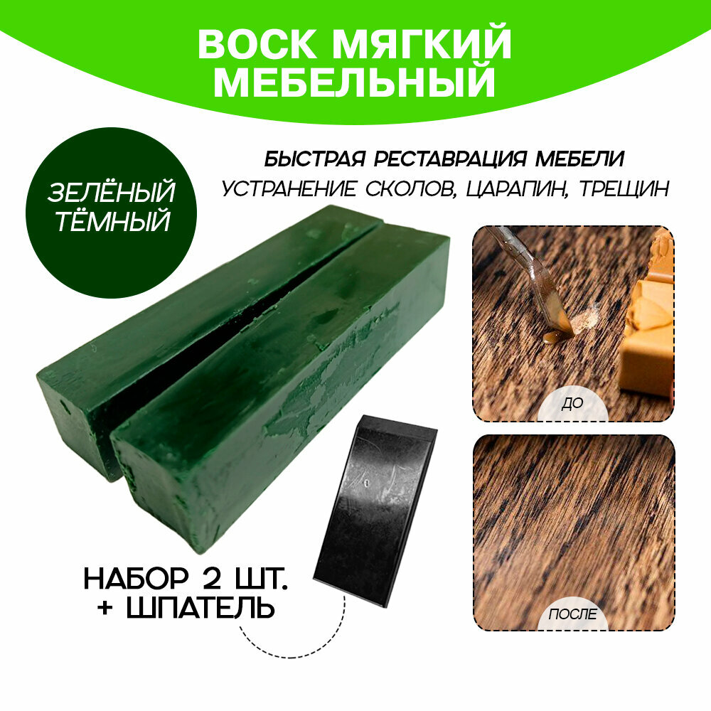 Отзывы на Воск мебельный Resmat для реставрации мебели и ламината 2 шт. со шпателем, зеленый темный