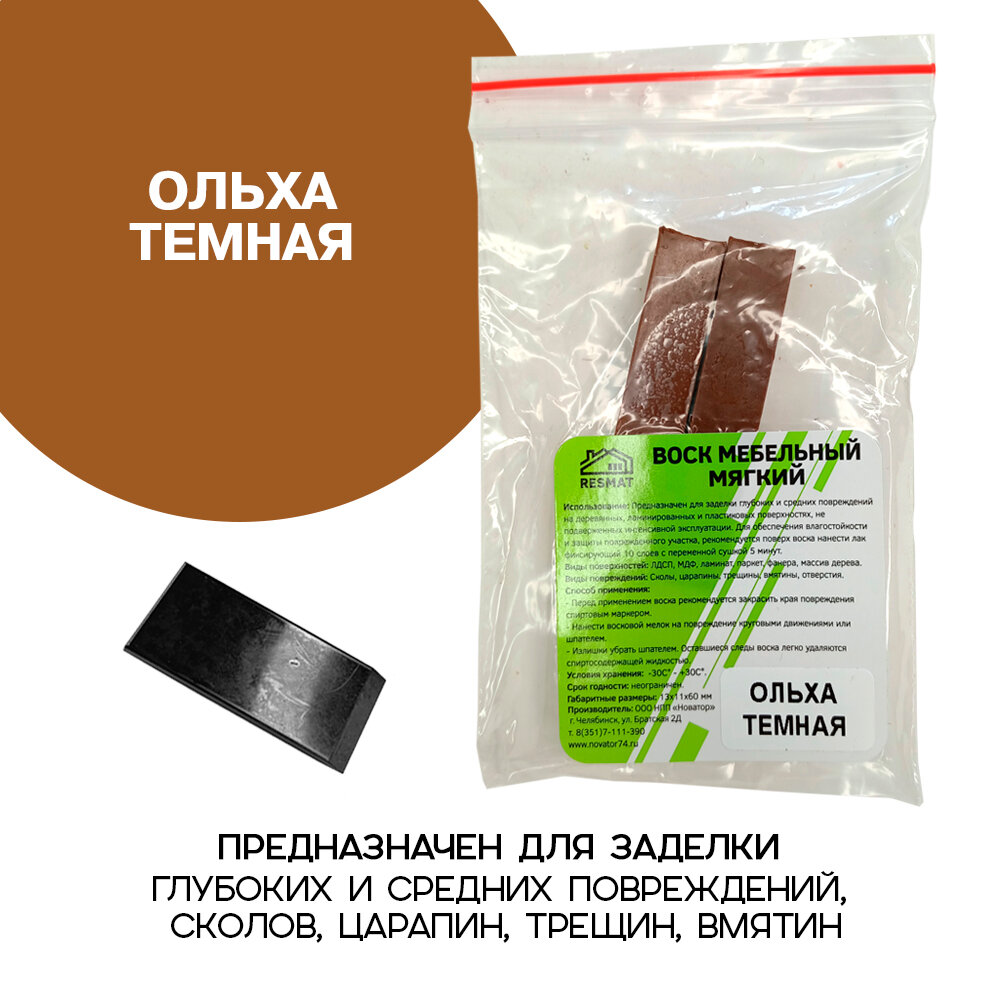 Воск мебельный Resmat для реставрации мебели и ламината 2 шт. со шпателем, "Ольха Темная" информация: