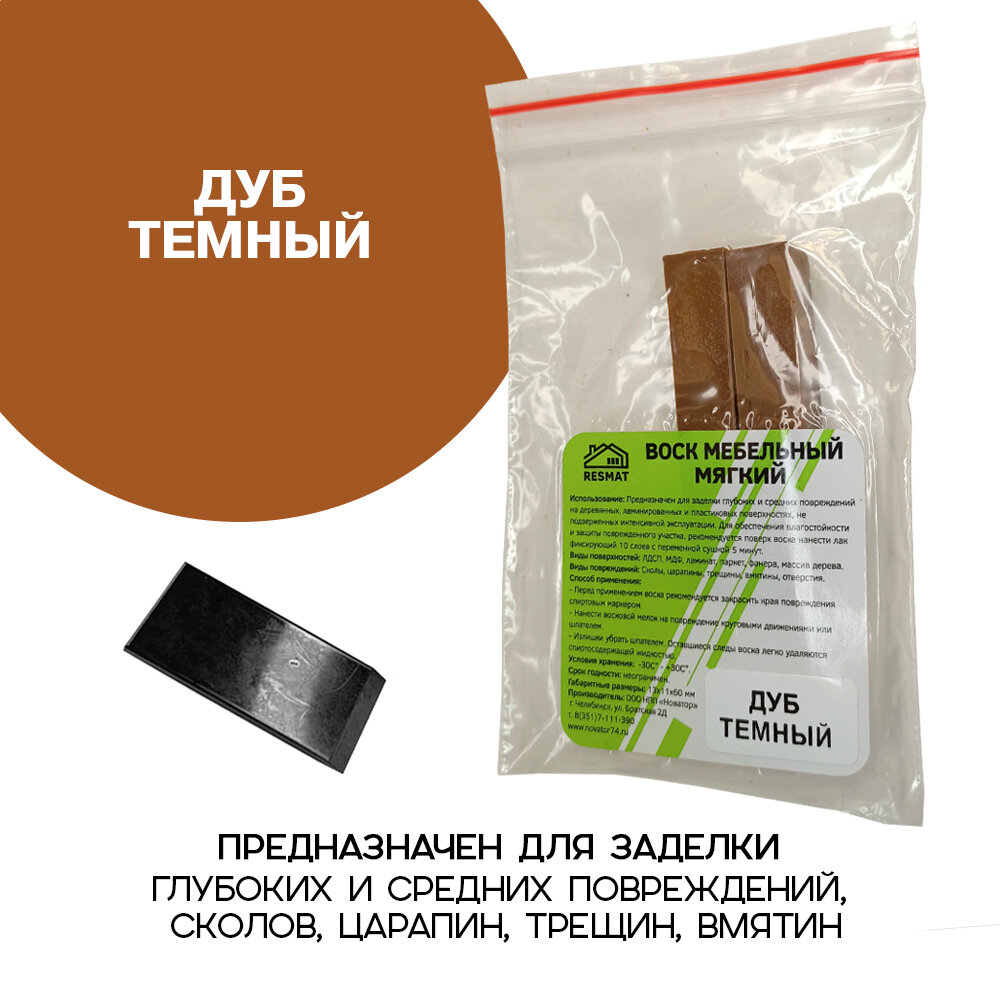 Воск мебельный Resmat для реставрации мебели и ламината 2 шт. со шпателем, "Дуб Темный" информация: