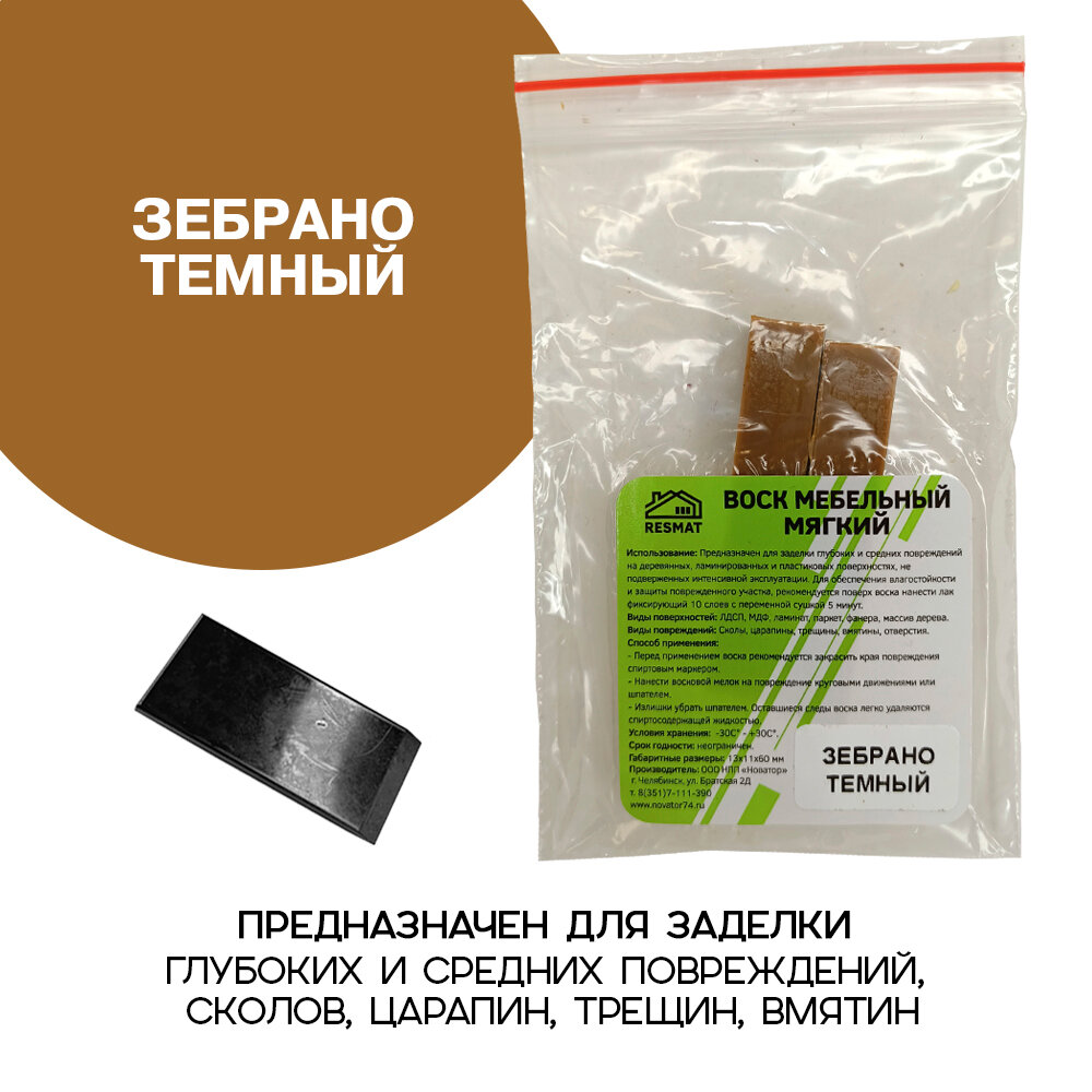 Воск мебельный Resmat для реставрации мебели и ламината 2 шт. со шпателем, "Зебрано Темный" информация: