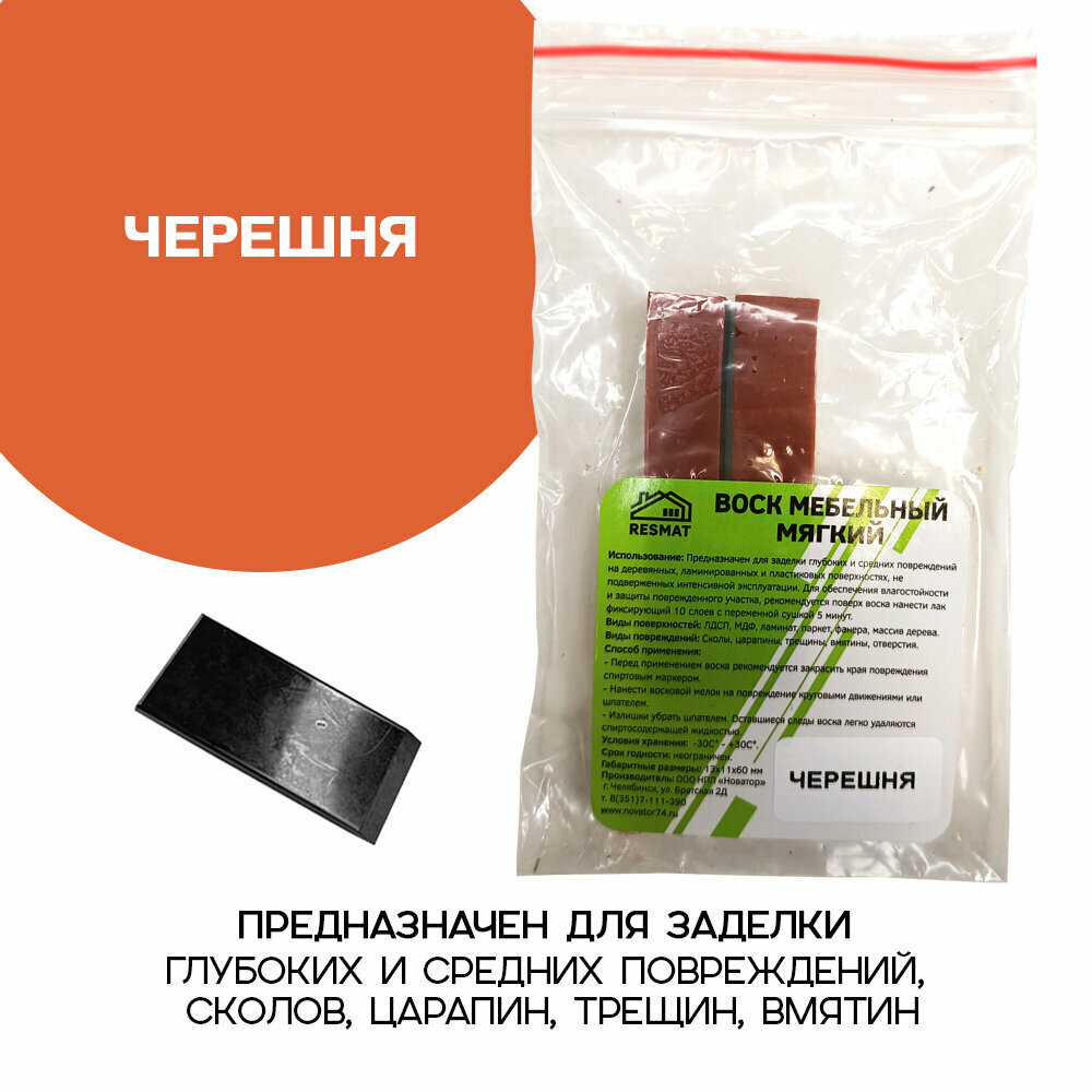 Воск мебельный Resmat для реставрации мебели и ламината 2 шт. со шпателем, "Черешня" информация: