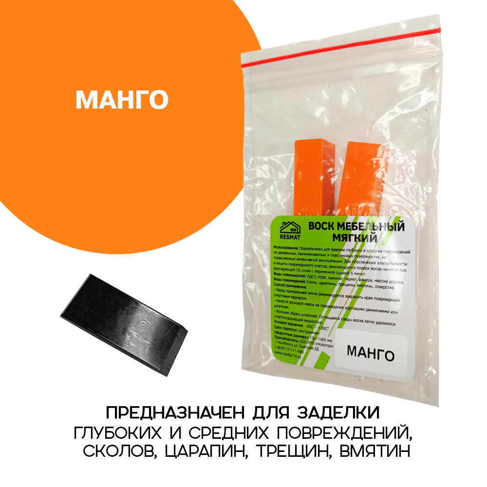 Воск мебельный Resmat для реставрации мебели и ламината 2 шт. со шпателем, "Манго" информация: