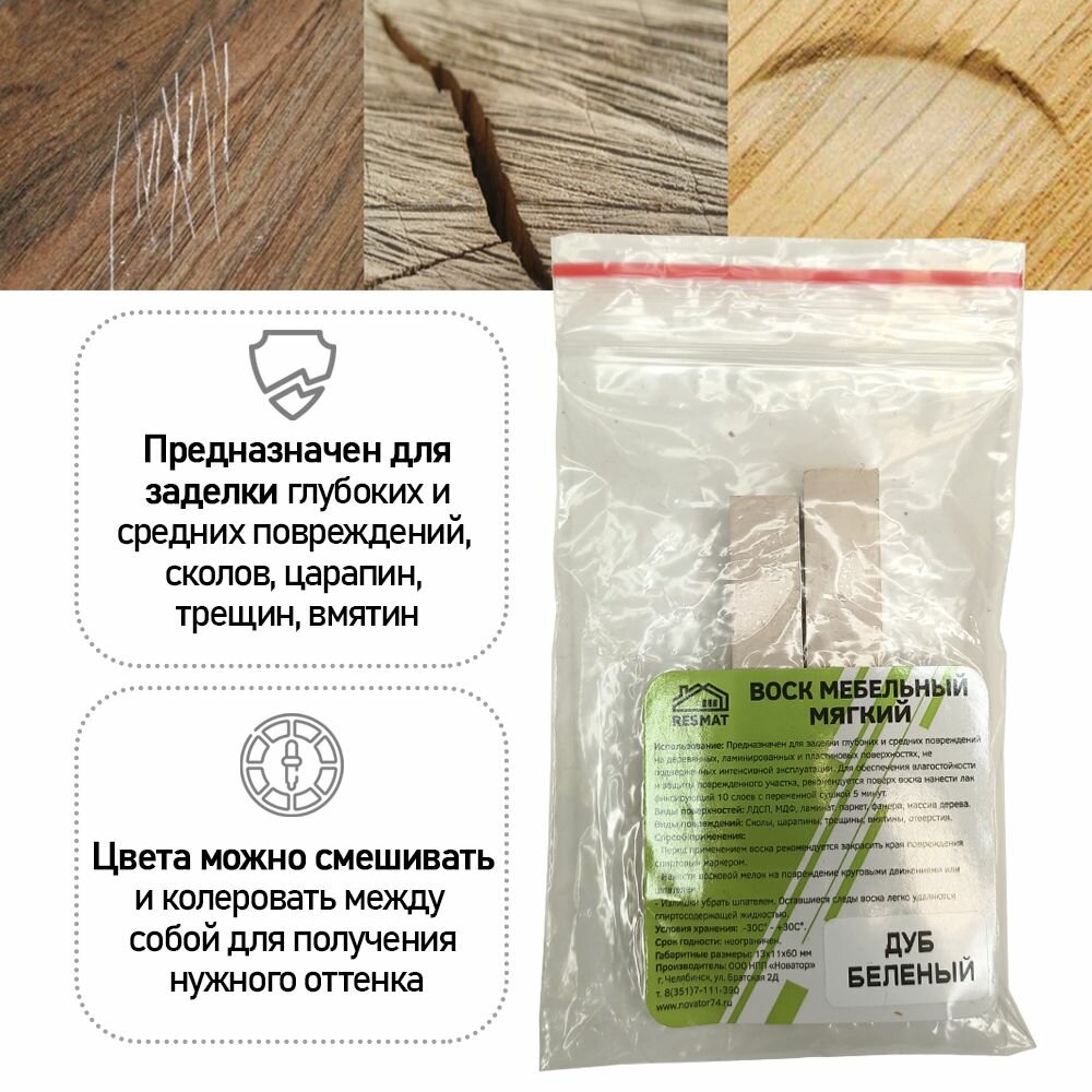 Воск мягкий для реставрации мебели и напольного покрытия/ 2 шт/ цвет - Дуб Беленый информация: