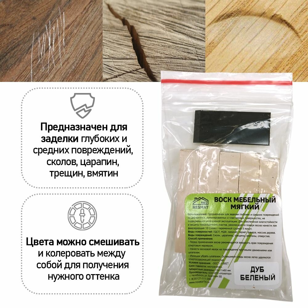 Воск мягкий для реставрации мебели и напольного покрытия/ 5 шт/ цвет - Дуб Беленый информация: