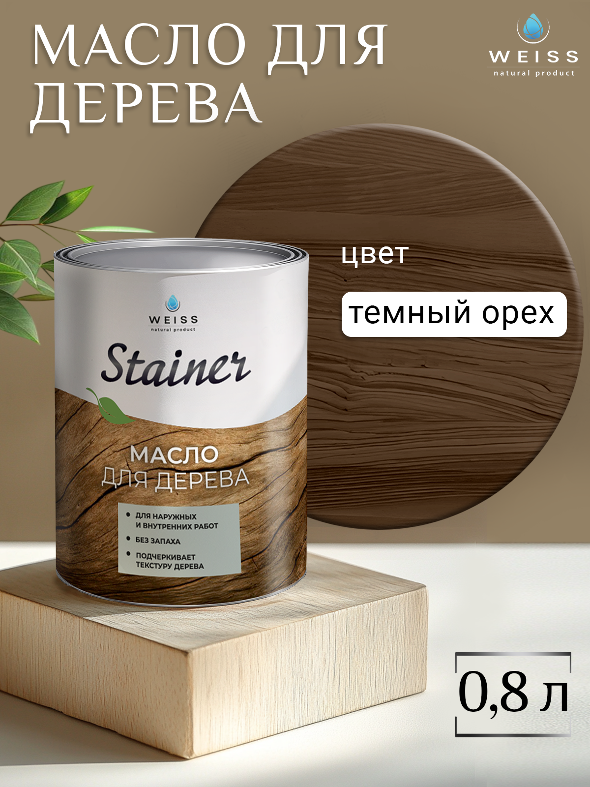 Масло для дерева WEISS natural product, цвет темный орех, 800 мл информация: