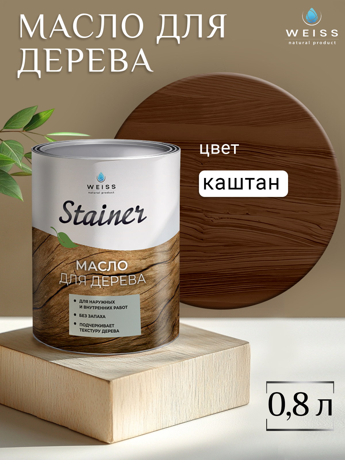 Масло для дерева WEISS "Каштан", цвет каштан, без растворителя, 800 мл информация: