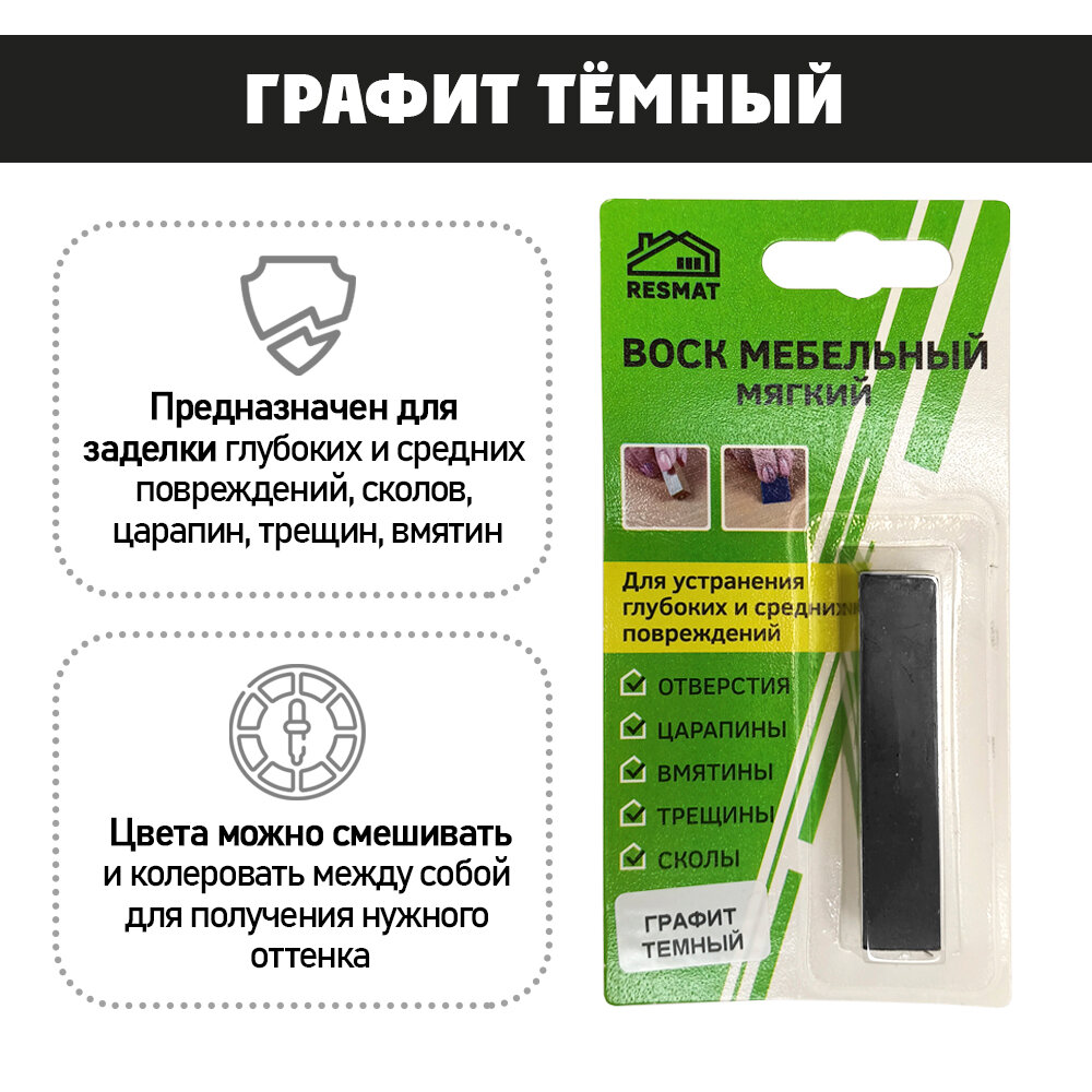 Воск мягкий для реставрации мебели и напольного покрытия/ 1 шт/ цвет - Графит Темный информация: