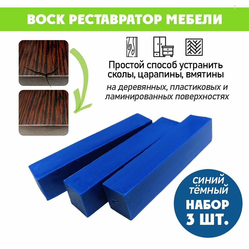 10 цен на Воск мягкий для реставрации мебели и напольного покрытия/ 3 шт/ цвет - Синий Темный
