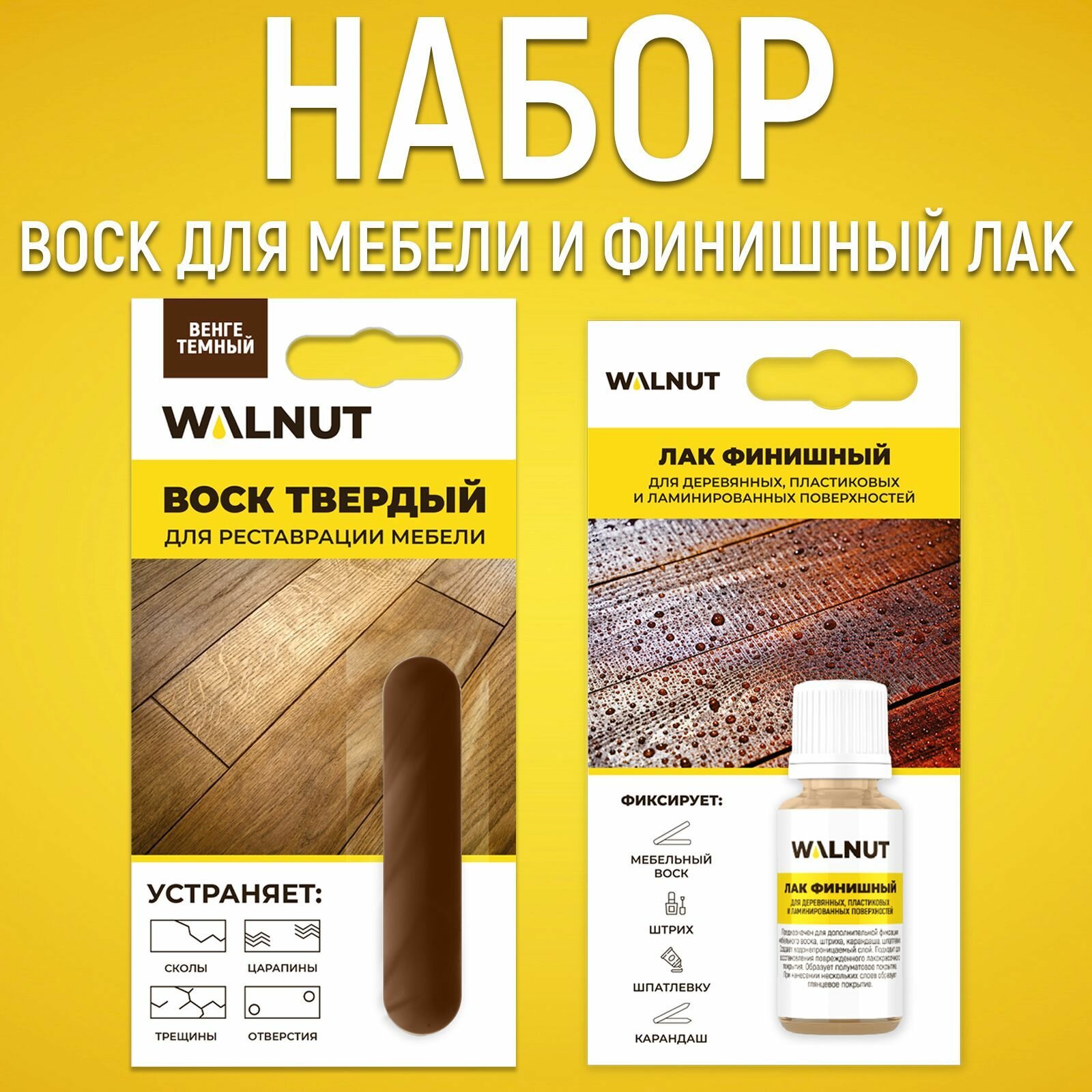10 цен на Набор для реставрации мебели WALNUT, твердый воск (венге темный) и финишный лак