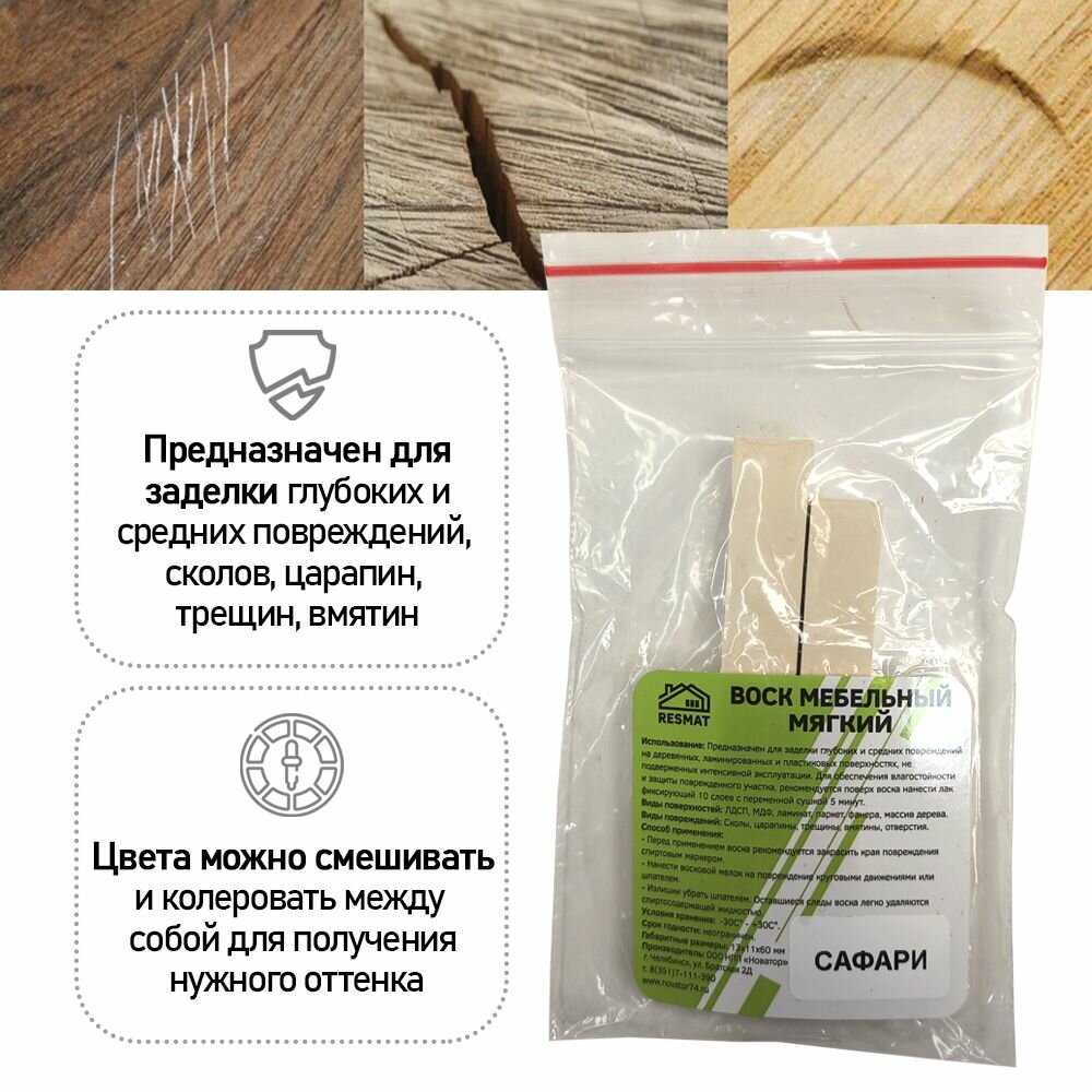 Воск мягкий для реставрации мебели и напольного покрытия/ 2 шт/ цвет - Сафари информация: