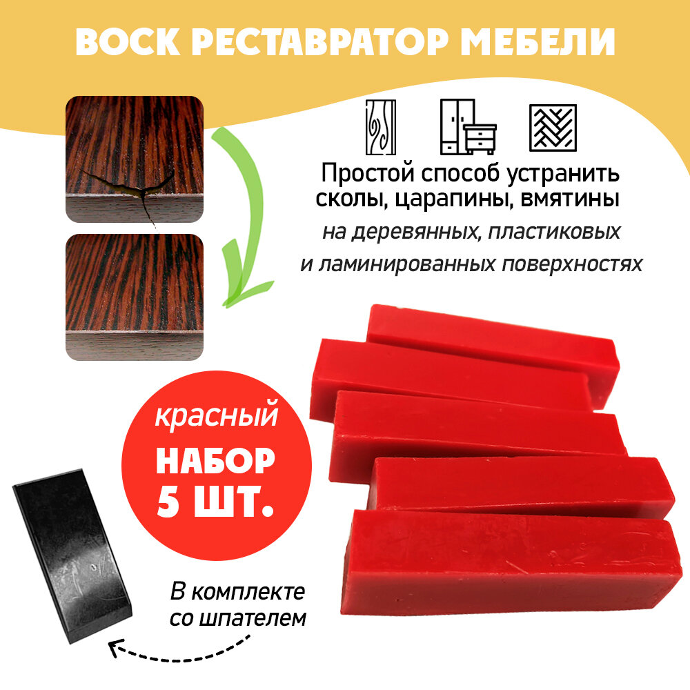10 цен на Воск мягкий Resmat для реставрации мебели и напольного покрытия, 5 шт, цвет - Красный