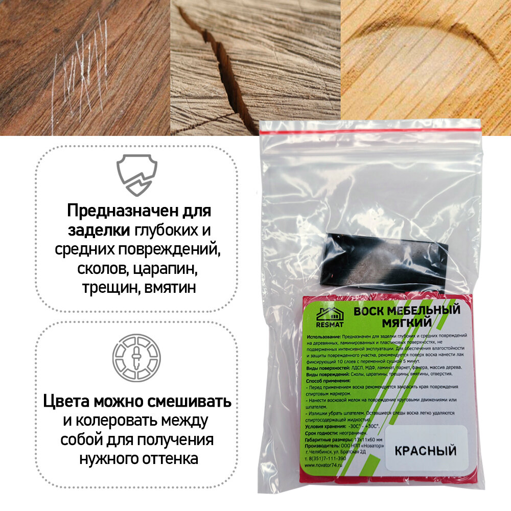 Воск мягкий Resmat для реставрации мебели и напольного покрытия, 5 шт, цвет - Красный информация: