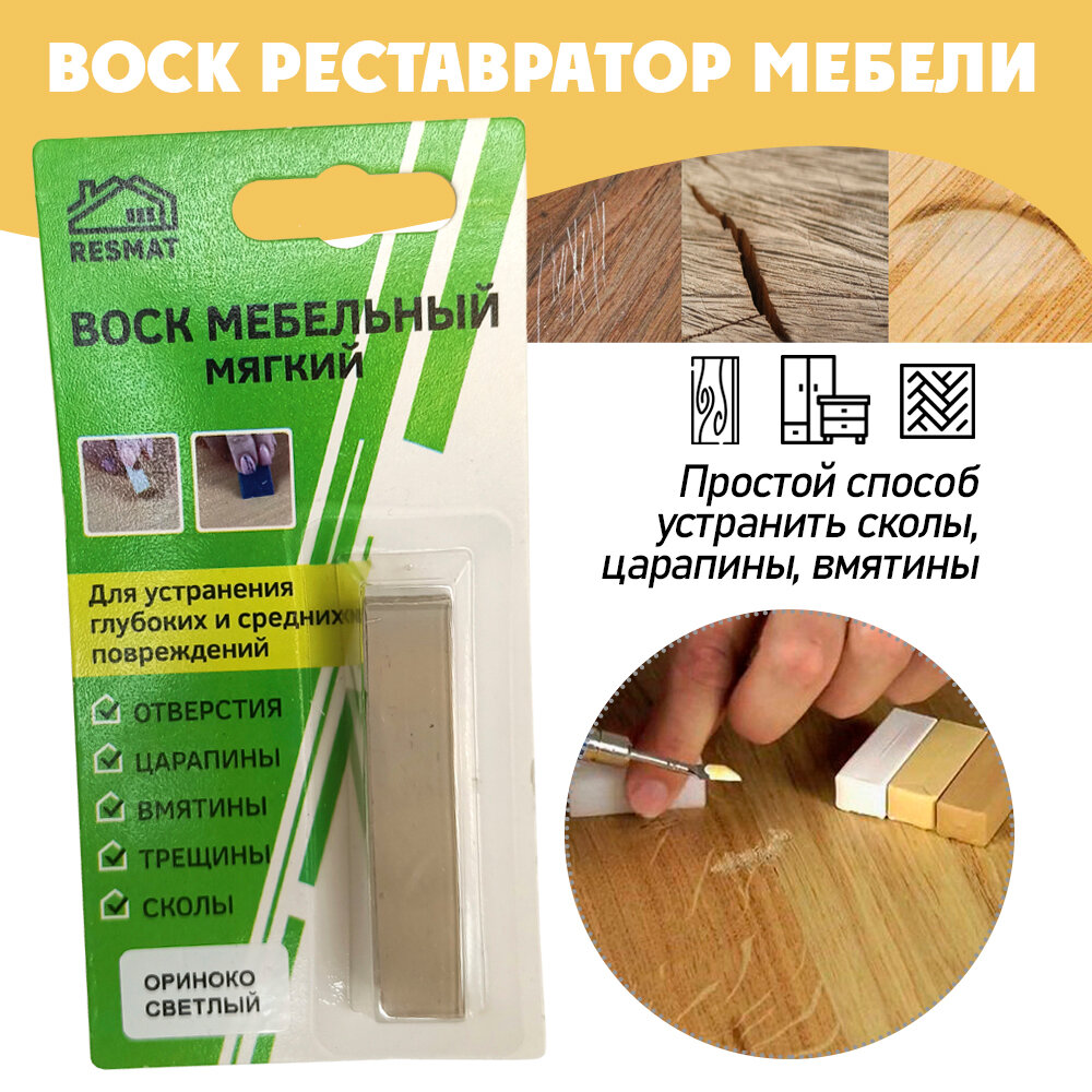 10 цен на Воск мягкий Resmat для реставрации мебели и напольного покрытия, 1 шт, цвет - Ориноко Светлый