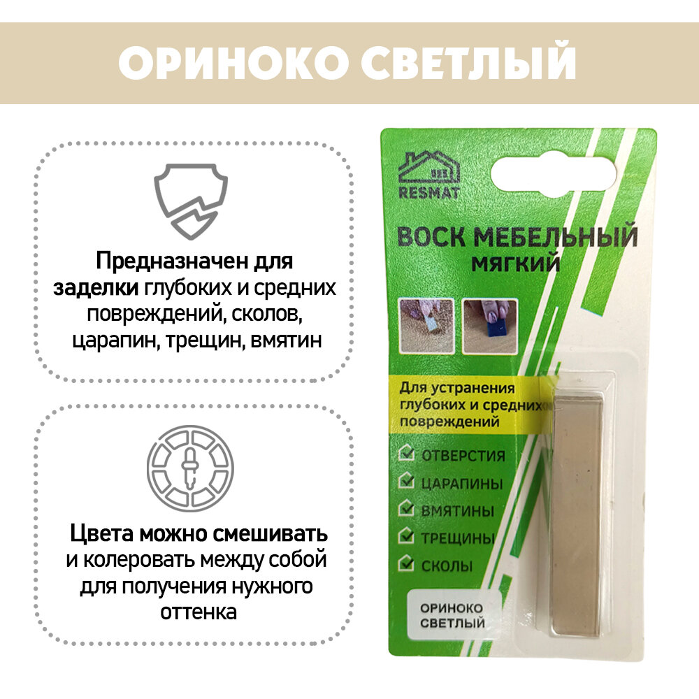 Воск мягкий Resmat для реставрации мебели и напольного покрытия, 1 шт, цвет - Ориноко Светлый информация: