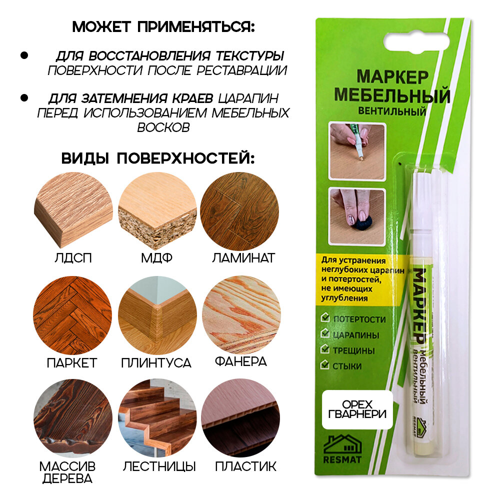 Отзывы на Маркер мебельный Resmat вентильный, объем краски 7 мл, цвет - "Орех Гварнери"