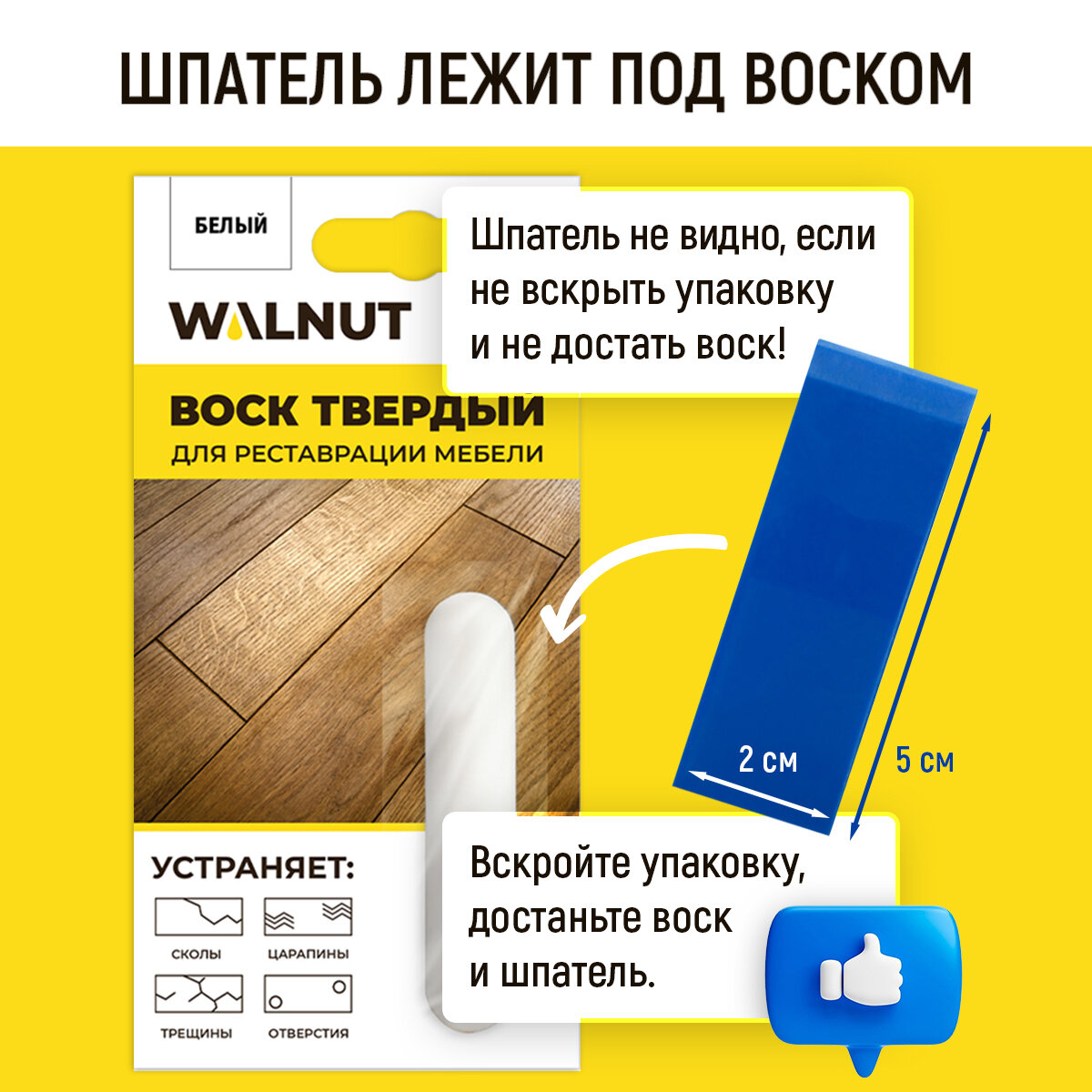 Мебельный воск WALNUT, кроющий, для реставрации, белый, твердый 435 ₽