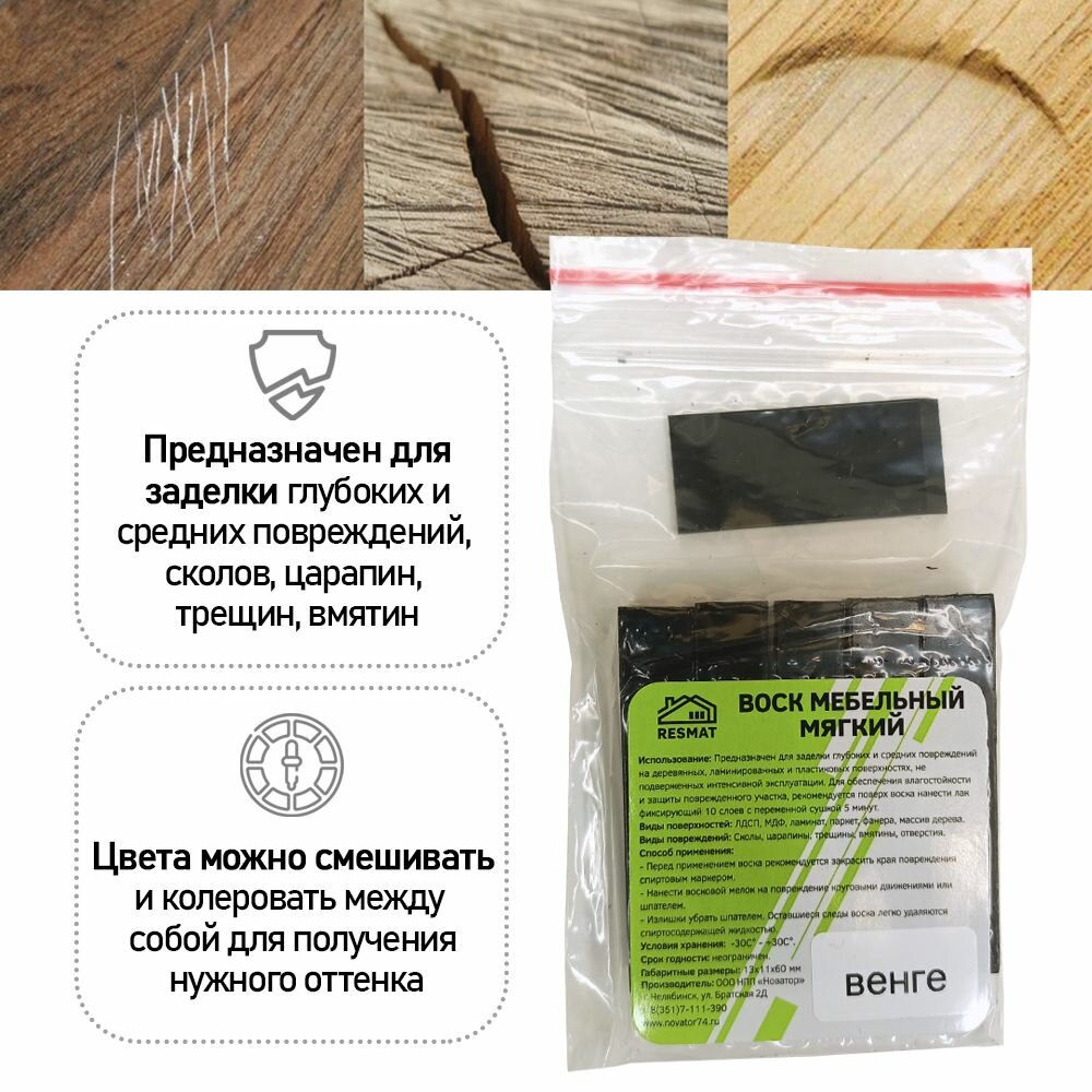 Воск мягкий для реставрации мебели и напольного покрытия/ 5 шт/ цвет - Венге информация:
