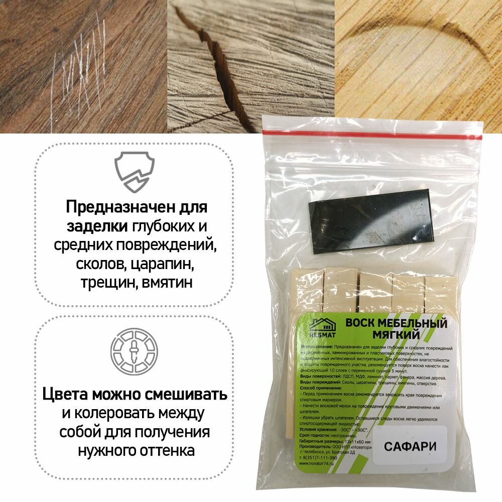Воск мягкий для реставрации мебели и напольного покрытия/ 5 шт/ цвет - Сафари информация: