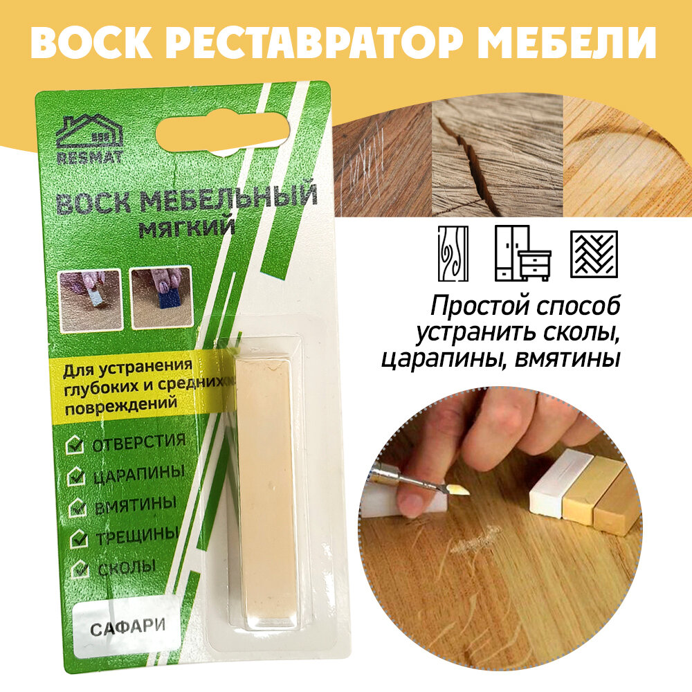 10 цен на Воск мягкий Resmat для реставрации мебели и напольного покрытия, 1 шт, цвет - Сафари