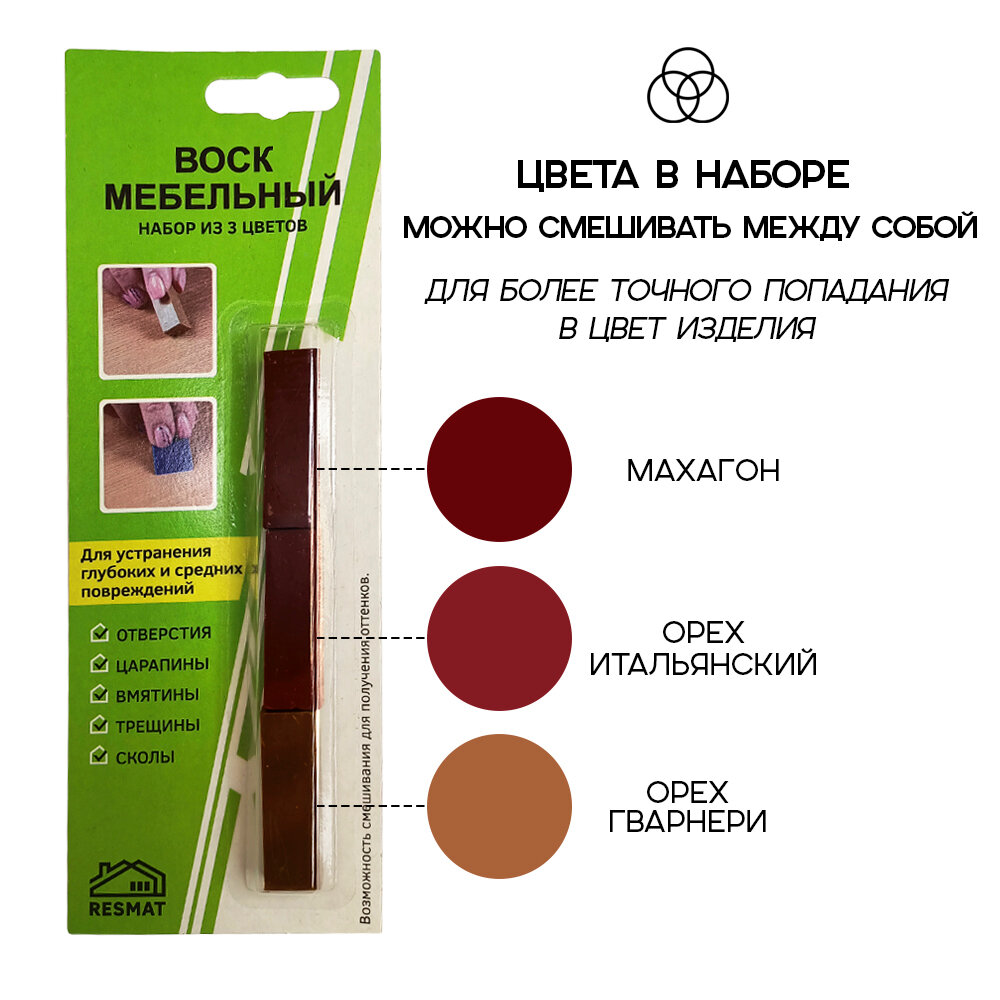 Набор воска мебельный Resmat для реставрации мебели и ламината 3 цвета, набор № 6, коричневые тона информация: