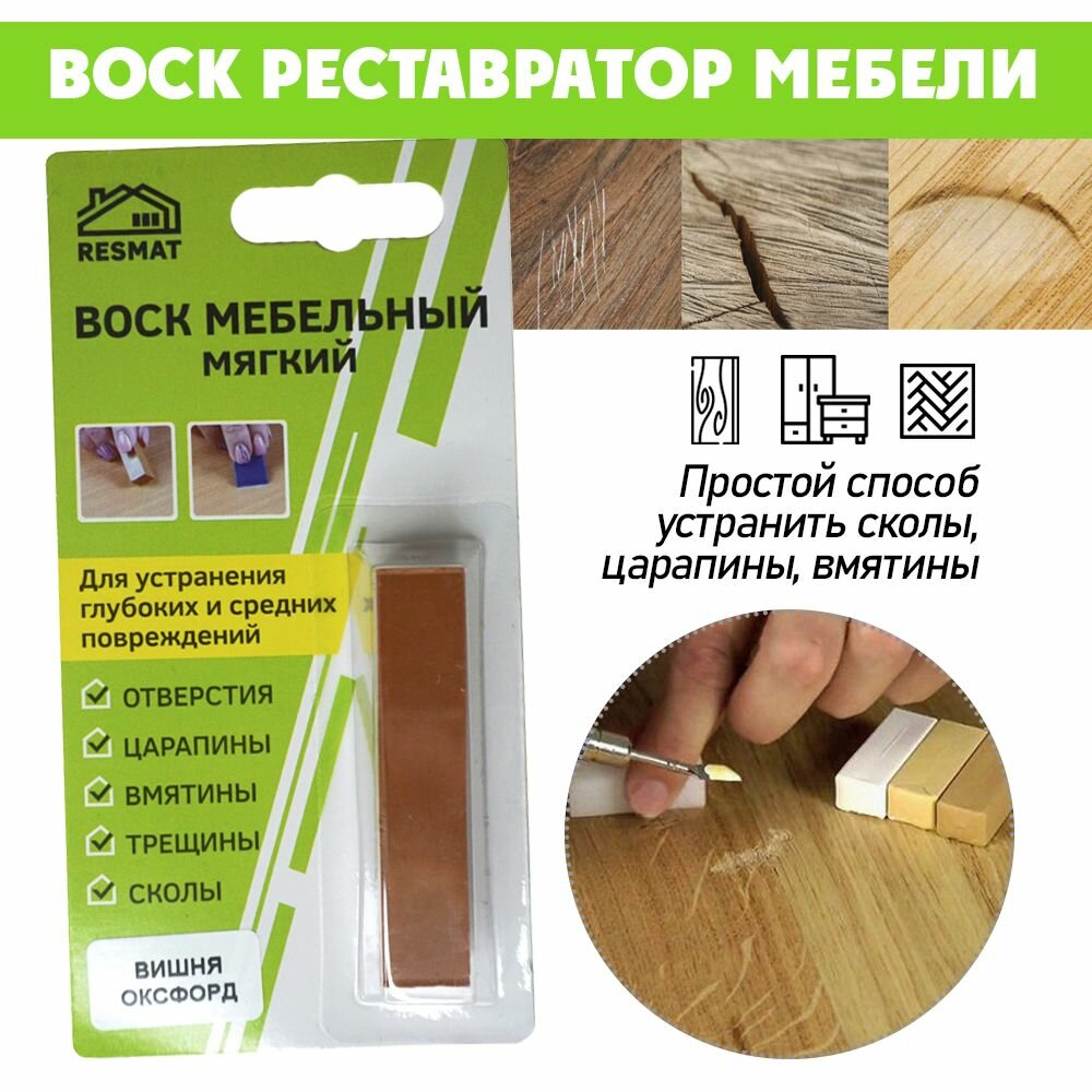 Отзывы на Воск мягкий для реставрации мебели и напольного покрытия/ 1 шт/ цвет - Вишня Оксфорд
