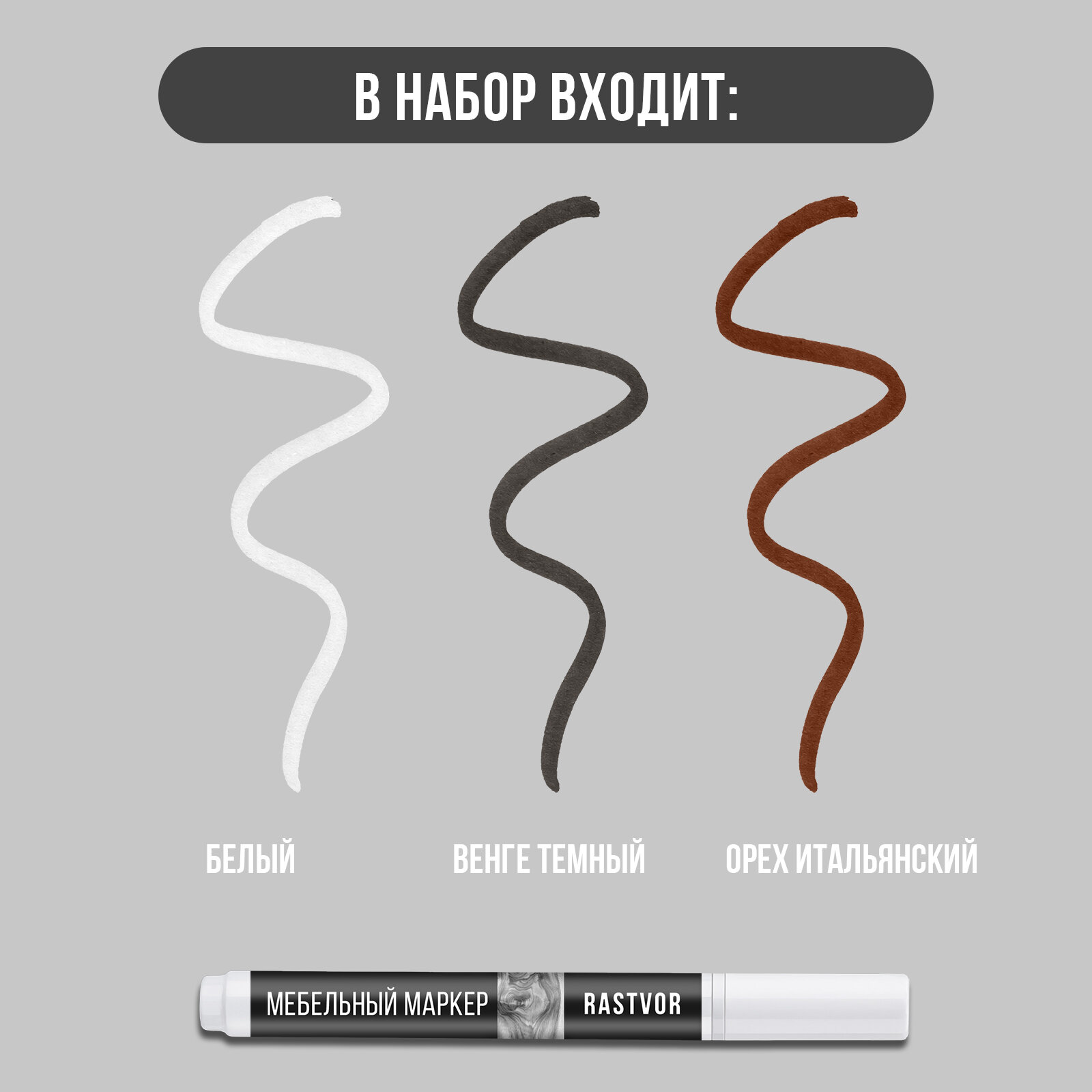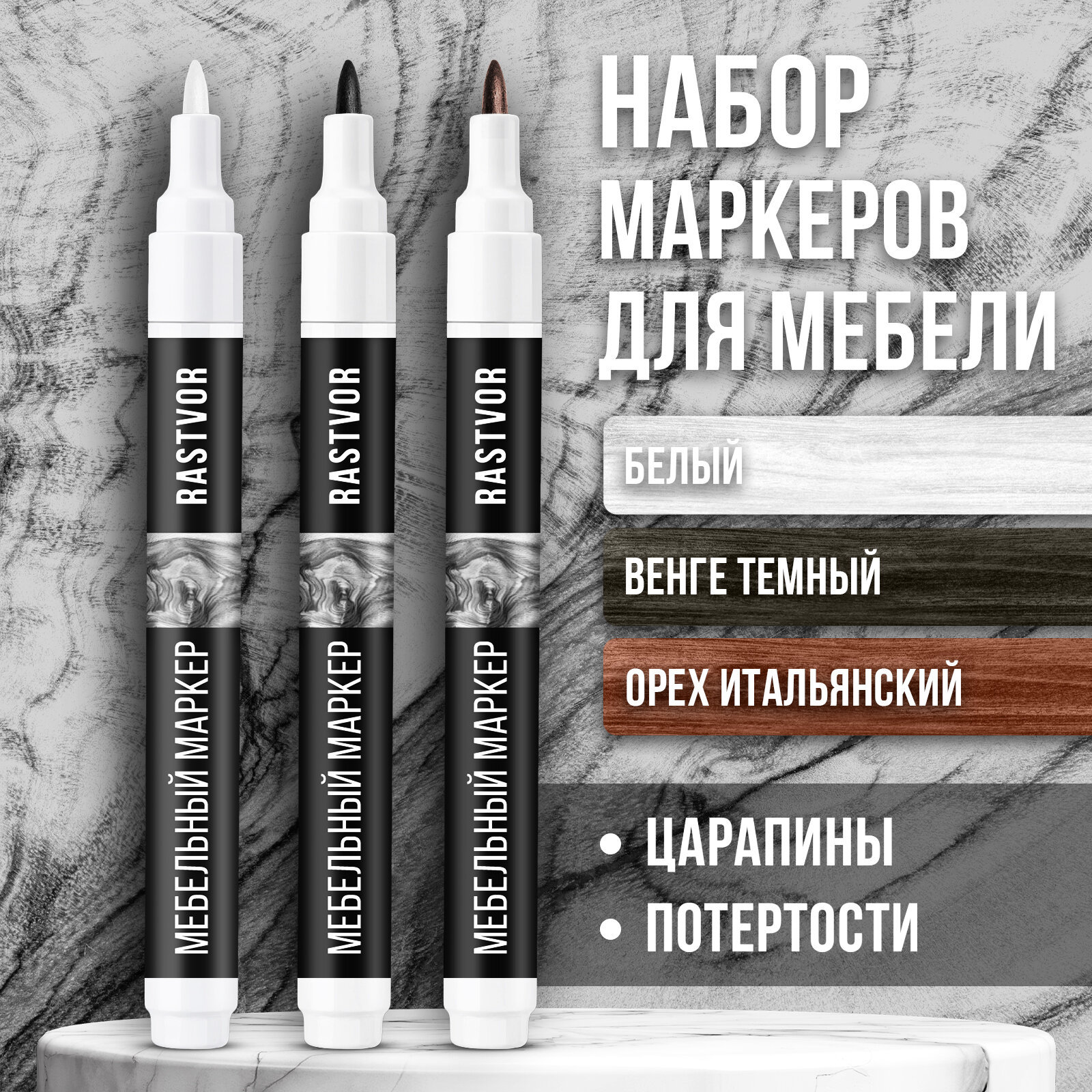 Набор маркеров для реставрации мебели из дерева (Белый, Венге Темный, Орех Итальянский), набор из 3 шт. информация: