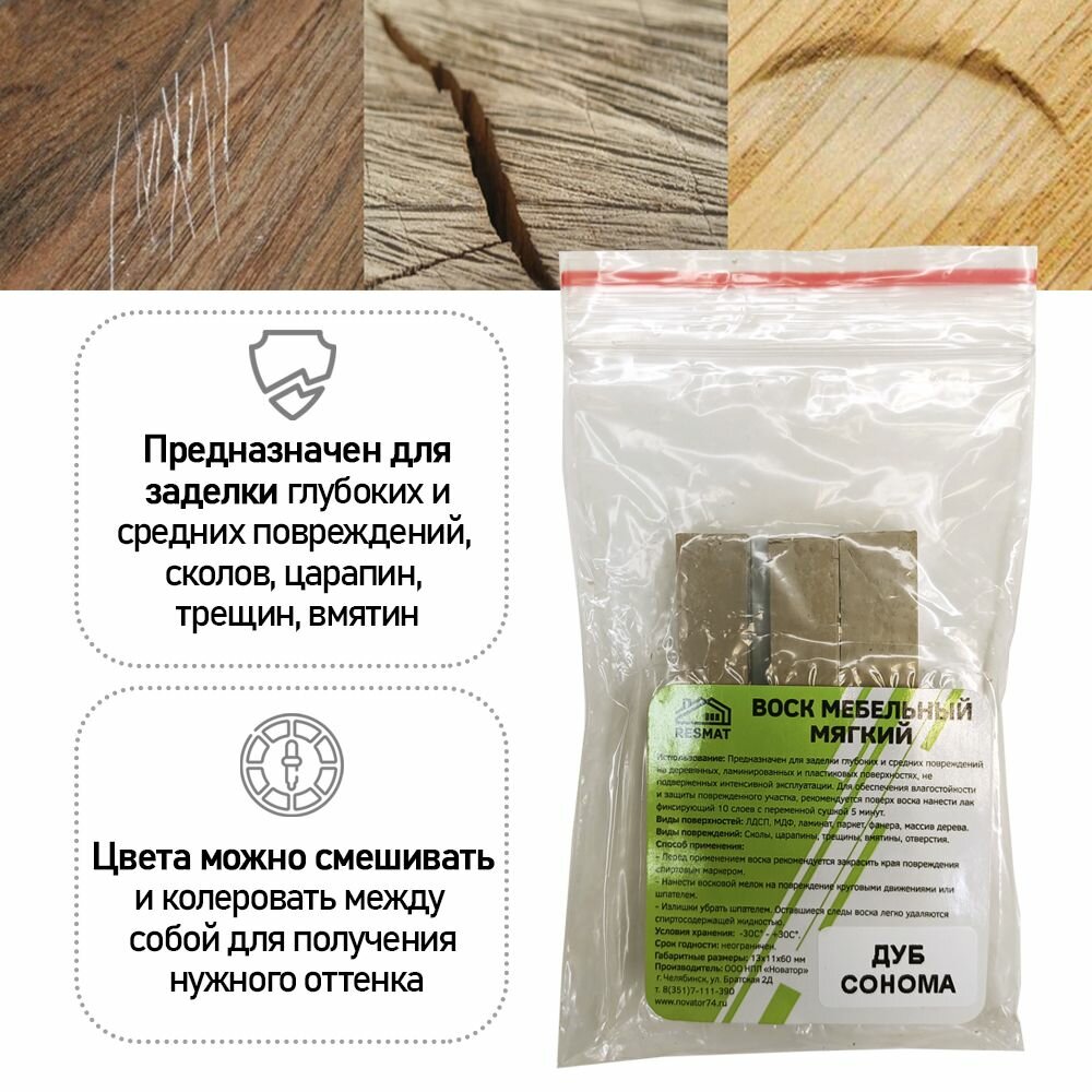 Воск мягкий для реставрации мебели и напольного покрытия/ 3 шт/ цвет - Дуб Сонома информация: