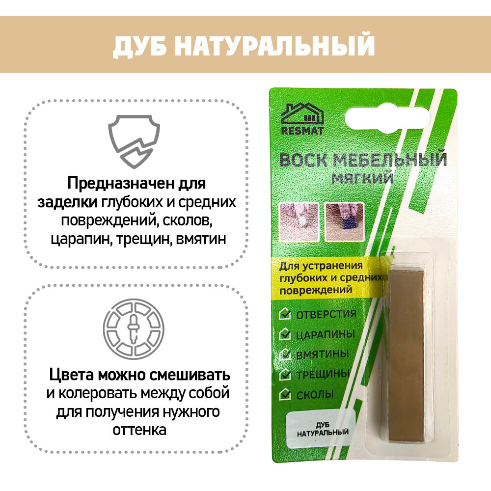 Воск мягкий для реставрации мебели и напольного покрытия/ 1 шт/ цвет - Дуб Натуральный информация: