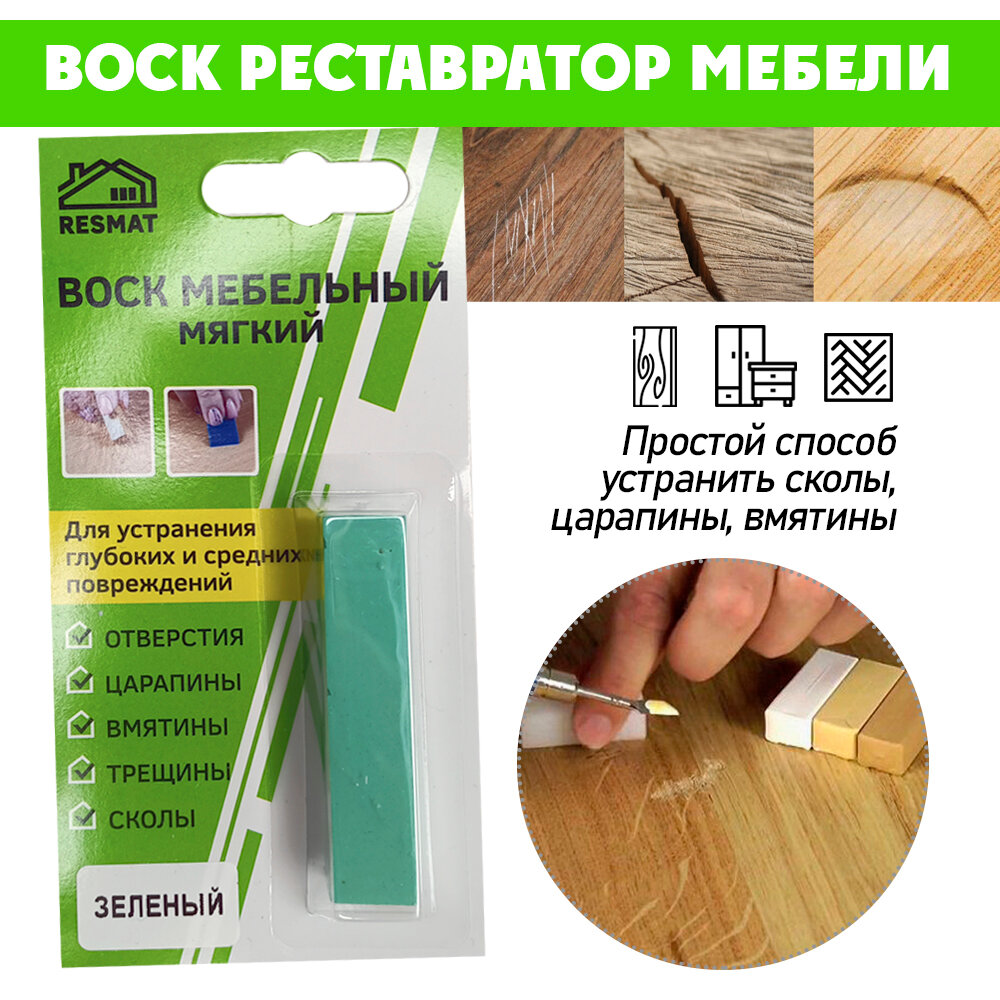 Воск мягкий для реставрации мебели и напольного покрытия/ 1 шт/ цвет - Зеленый информация: