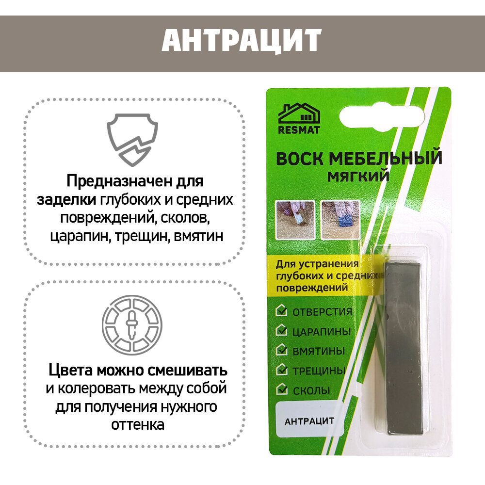 Воск мягкий Resmat для реставрации мебели и напольного покрытия, 1 шт, цвет - Антрацит информация: