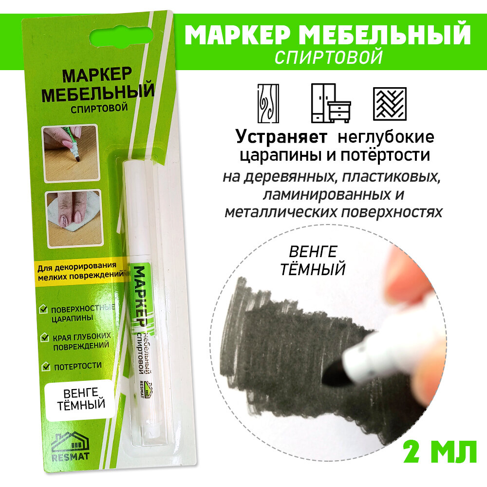 10 цен на Маркер мебельный СПИРТОВОЙ, Resmat, 2 мл, цвет - "Венге Темный"