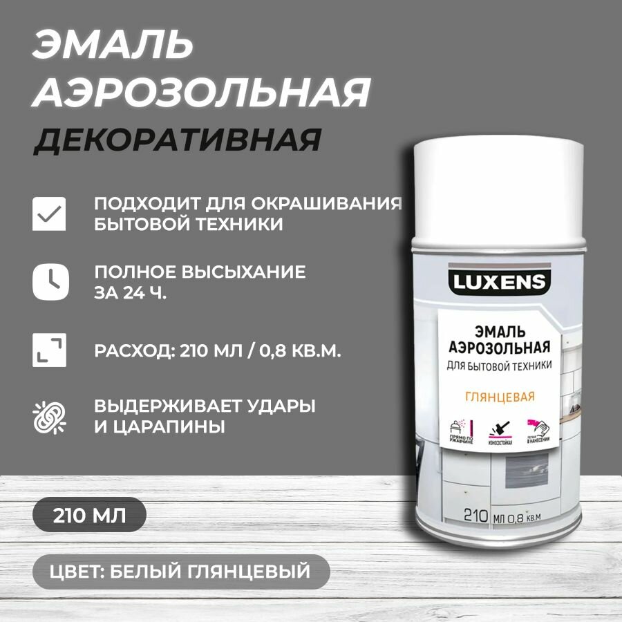 Эмаль аэрозольная для бытовой техники Luxens глянцевая цвет белый 210 мл информация: