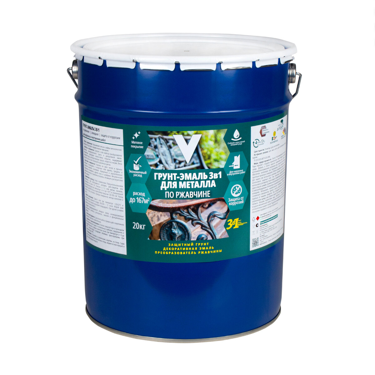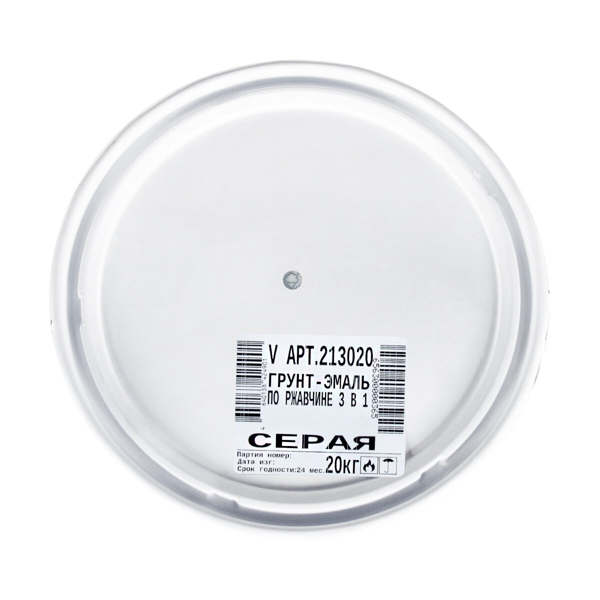 Грунт-эмаль по ржавчине 3 в 1 V, матовая, 20 кг, серая, жестяное ведро, 1шт информация: