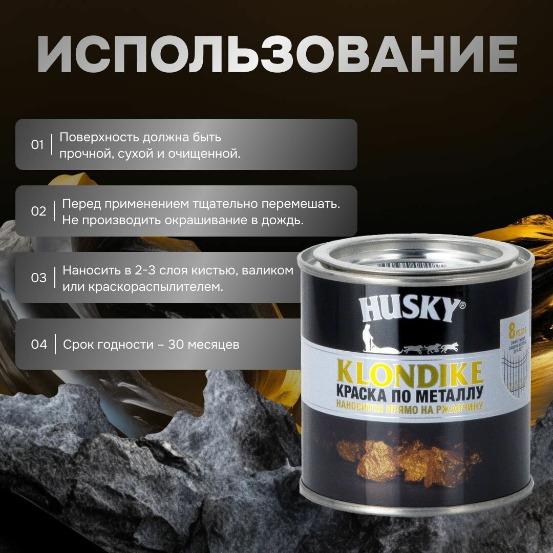 HUSKY KLONDIKE Грунт-эмаль 3 в 1, краска по металлу глянцевая, по ржавчине, декоративная золото RAL 1036 (250мл) 804 ₽
