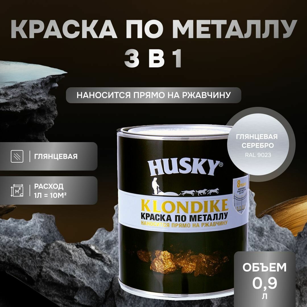 HUSKY KLONDIKE Грунт-эмаль 3 в 1, краска по металлу глянцевая, по ржавчине, декоративная серебро RAL 9023 (0,9л) информация: