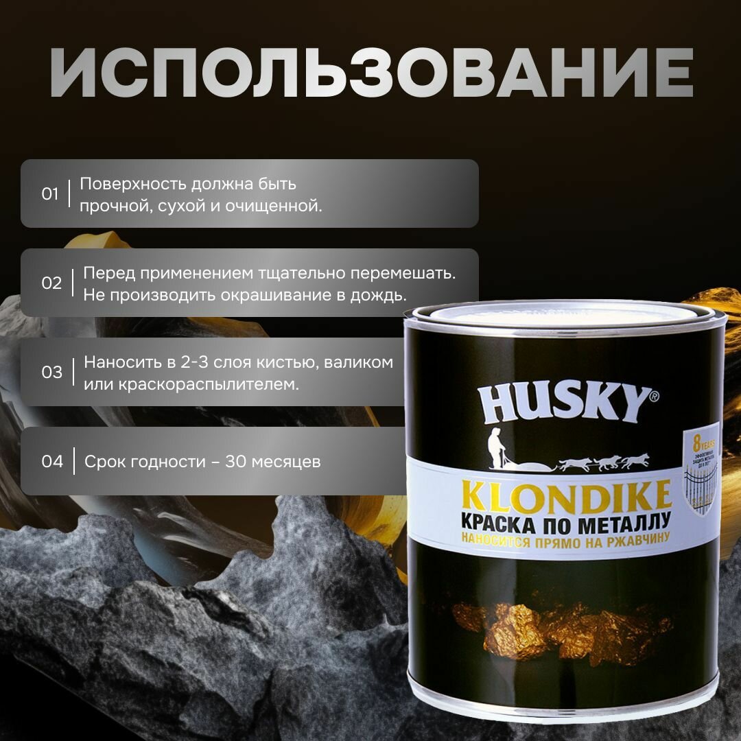 HUSKY KLONDIKE Грунт-эмаль 3 в 1, краска по металлу глянцевая, по ржавчине, декоративная золото RAL 1036 (2,5л) 4 060 ₽