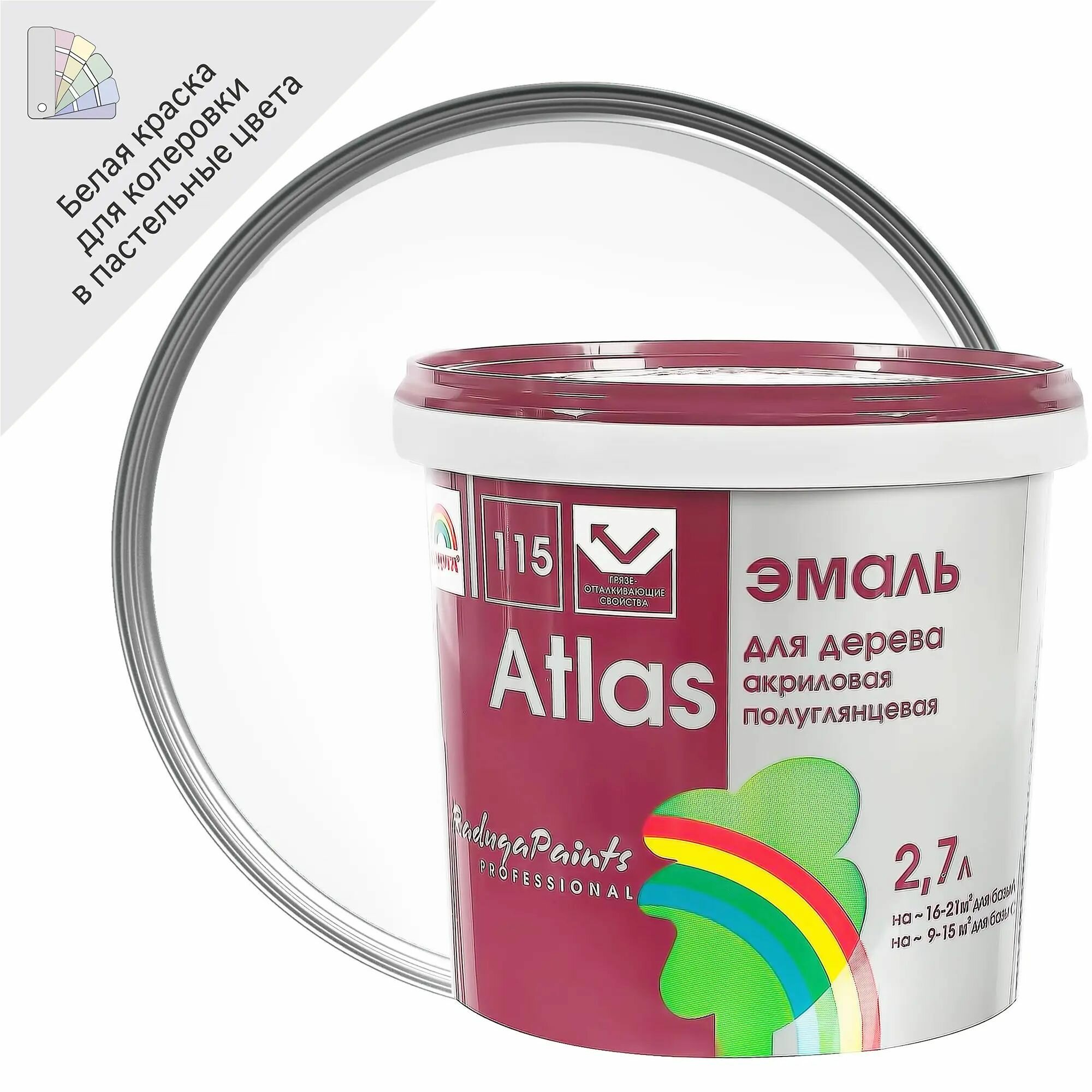 Эмаль Атлас 115 акриловая полуглянцевая цвет белый 2.7 л информация: