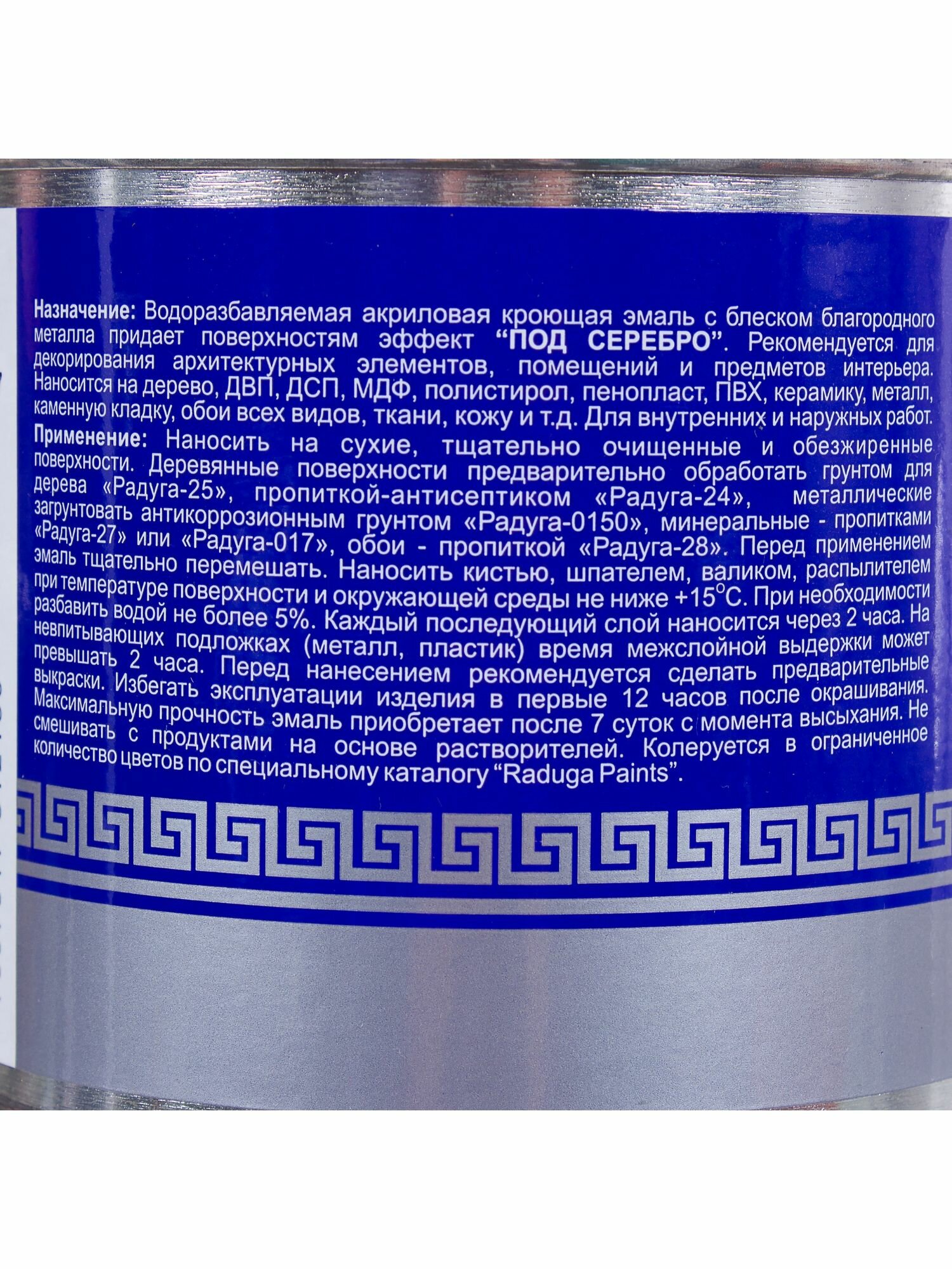 Эмаль акриловая Радуга глянцевая серебряный металлик Р-117 0,45 л информация: