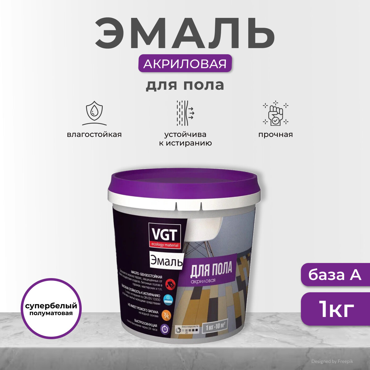 Эмаль для пола VGT ВД-АК-1179 Профи, акриловая, полуматовая, база A, супербелая, 1 кг информация: