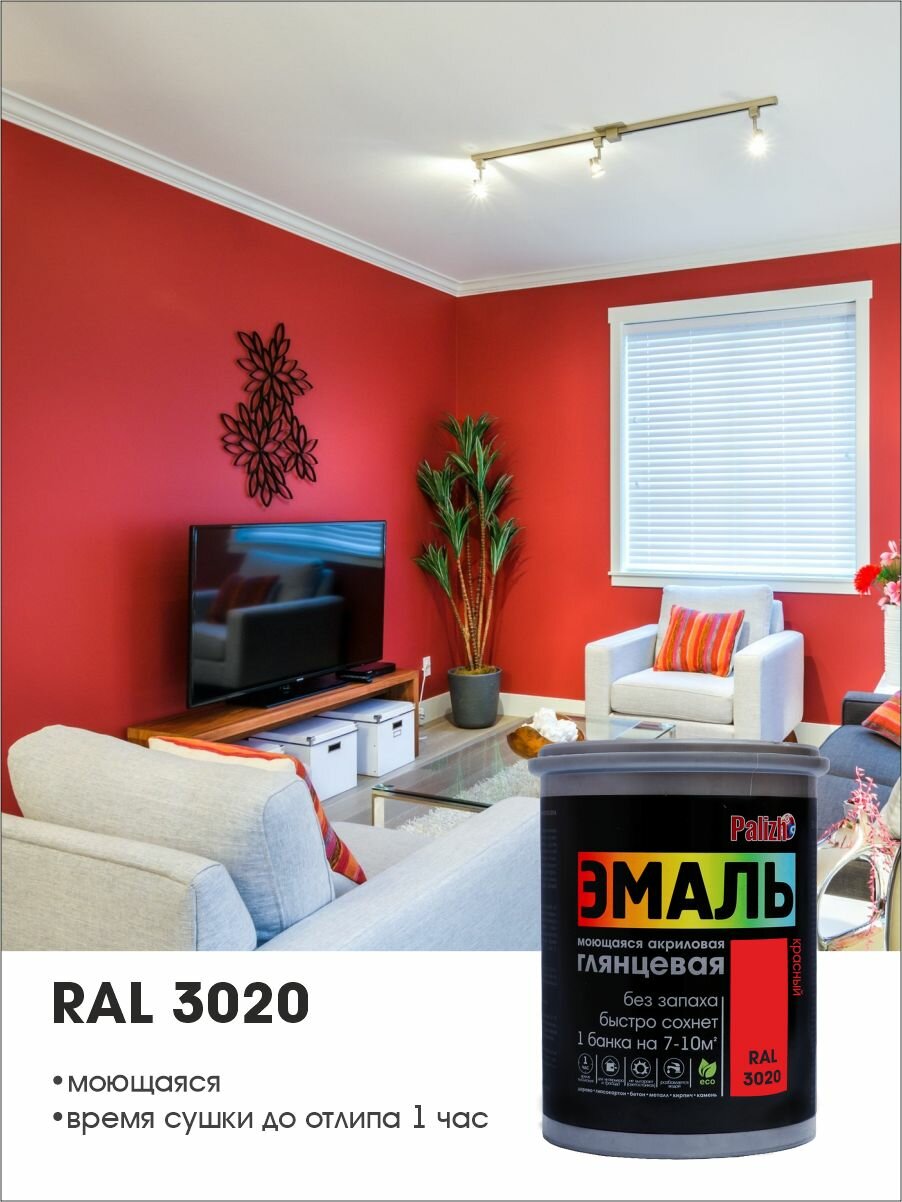 Краска эмаль акриловая глянцевая "Palizh" (1 кг), красный RAL 3020 информация: