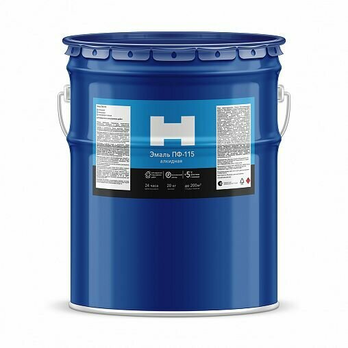 Эмаль ПФ-115 для металла и дерева H, алкидная, 20 кг, белая, 1шт, жестяное ведро информация: