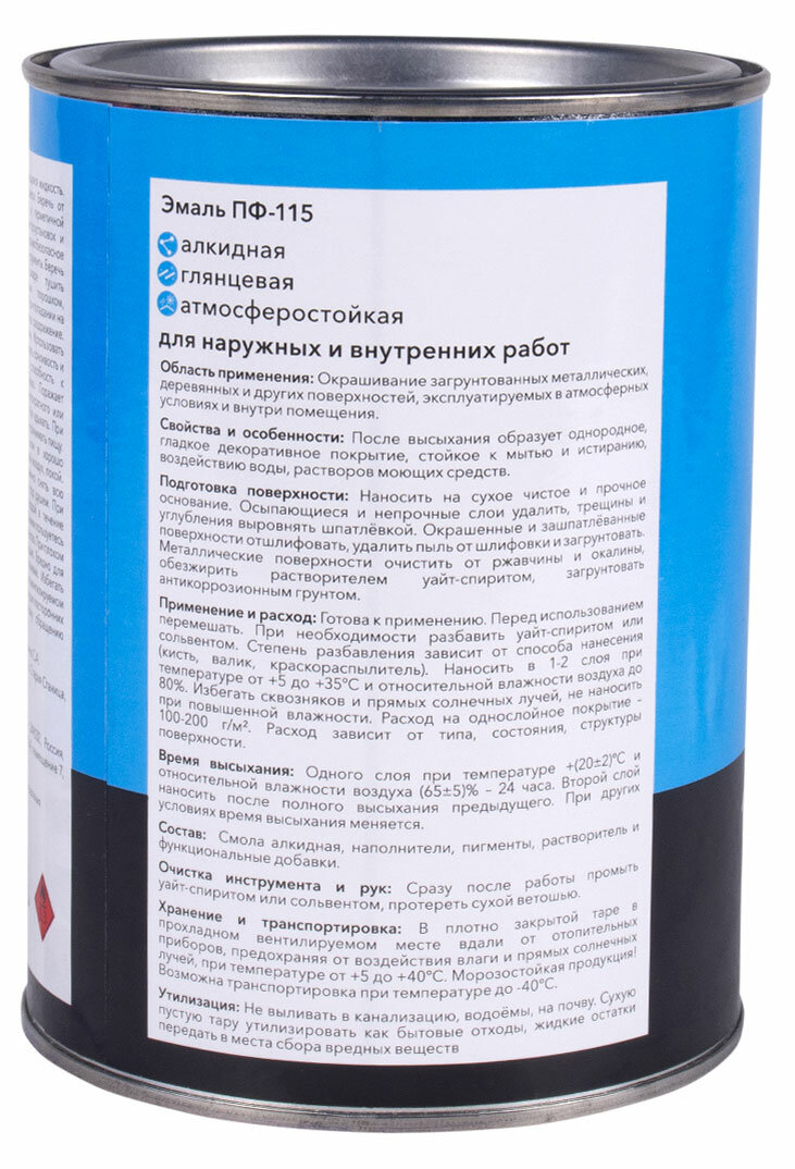 Эмаль ПФ-115 для металла и дерева H, алкидная, 0,8 кг, черная, 1шт, жестяная банка информация: