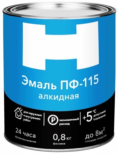 Эмаль ПФ-115 для металла и дерева H, алкидная, 0,8 кг, синяя, 1шт, жестяная банка