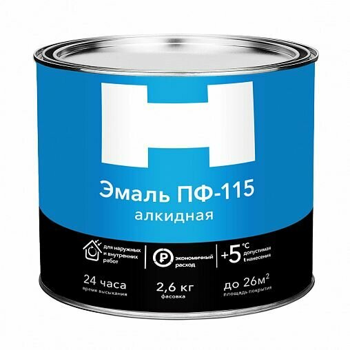 H Эмаль ПФ-115 "h" для металла и дерева H, алкидная, 2,6 кг, голубая 780 ₽